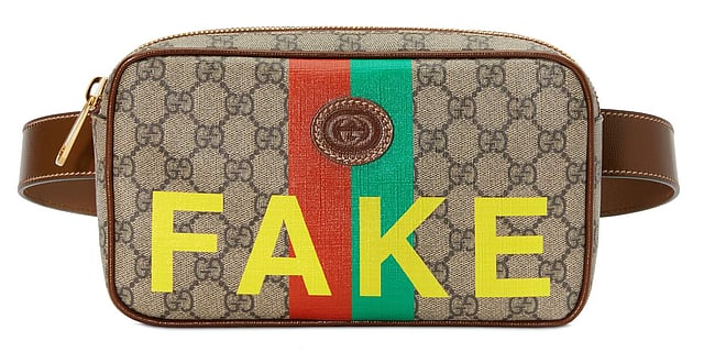 A repeated theme in the Gucci Autumn/Winter 20-21 men’s collection was the playful ‘Gucci Fake Not’ motif. Taking inspiration from the logo trend that began in the early ‘80 and eventually became a defining part of streetwear, the motif is creative director Alessando Michele’s irreverent and ironic reference to the brand’s logo, a significant element of their designs. Here are a few of the pieces from the collection: