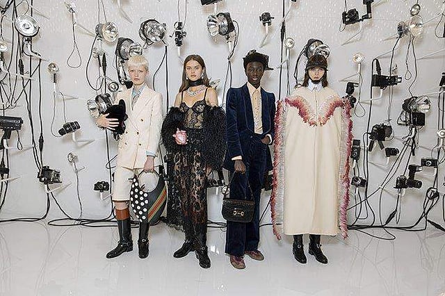 Alessandro Michele, Creative Director of Gucci, unveiled a new collection yesterday, to celebrate the 100th anniversary of the luxury fashion house. Titled Aria, the collection referenced some of Gucci's signature elements from equestrian-themed pieces to influences from the Tom Ford era. Presented virtually, it featured models walking down long corridors and paparazzi was replaced by hundreds of flashing cameras attached to the walls. The sountrack was a medley of pop songs with references to Gucci in the lyrics. Here are some of the key looks from the presentation...