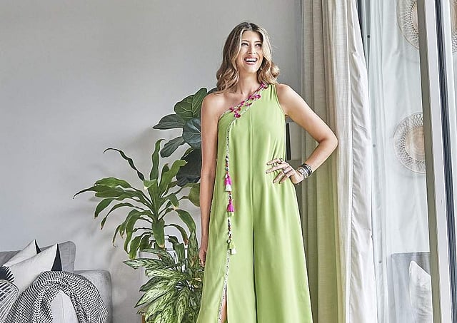 Special mention for the denims, that are effortless to layer up or wear on their own. The inclusion of belts to tie-up printed slips with sheers or flirty mini drop-waist dresses for cocktail evenings, adds that glamour element to the line. The signature one-shouldered kaftans have a subtle placement of embroidery and tassels to make these ensembles truly go from day to night.