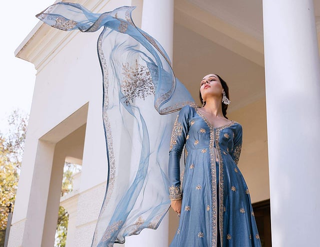 Label Megha and Jigar, a California and New Delhi-based fashion brand formed in 2013 by designers Megha Kumari and Jigar Mali, loves lending a contemporary touch to each of its classic pieces. Worn by celebs like Kareena Kapoor Khan, Vidya Balan, Rakul Preet Singh, Sunny Leone and Raveena Tandon besides others, the couturiers love experimenting with rich colours, delicate forms and embellishments and their clothing line has come up with the first set of festive offerings called Dori that embodies all the elements of their signature style.