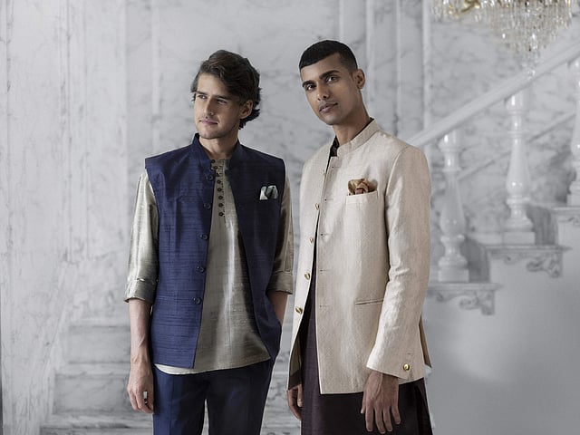The entire collection has two parts — bespoke and ready-to-wear. The ready-to-wear collection has casual and formal shirts, kurtas, jackets and dhotis, while the bespoke is