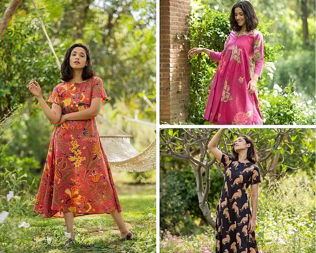 Their previous collections such as the Madrid were informed by their visit to the Rastro, Madrid’s infamous flea market and more while the Shibori line was an exploration of Japanese tie & dye tradition. The Hawaii-specific print, Viva Magenta, is a chintz print from their archives set in the colour Viva Magenta, which is the Pantone Colour of the Year. “Our inspiration for MalMal Mela comes from the beautiful fabric and feel itself. The collection boasts all things malmal and we have artisan-made products that span different categories and moods for your home and your loved ones,” she reveals. One can shop for ensembles like the Trucker Kurta in leopard black print, the Martina Dress with floral features in Hawaii ruby and Noori Kurta in Madrid pink.