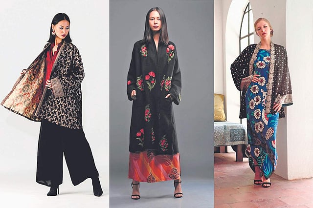 Sonam’s latest winter/festive collection Golden Threads is an evolution of the signature line. “It’s a little more contemporary because I have added brocade dresses, interesting jackets and bright coloured coats. The collection is basically about embroidery, craftwork and sustainable ecological friendly textiles,” the designer says, adding, “It is inspired by thread work, painted flowers and colours of the Koi pond. Based on fantasy and artistic old world charm, this collection revisits travel and the beauty of painted flowers depicted through embroidery and canvas.”