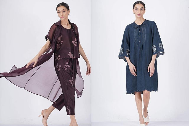 For Eco, the designer used organic cotton, silk Chanderi, pre-Indian silk, and silk organza. According to Pallavi, these fabrics not only reduce environmental footprint but also offer durability and comfort. As far as the colours are concerned, she went for earthy tones like deep grape, indigo, olive, burgundy, and black evoking a sense of tranquility found in untouched natural environments. To create the edit, the brand has partnered with artisans and suppliers who share the same beliefs of using eco-friendly fabrics, recycled materials, and innovative techniques that prioritise the planet’s well-being.