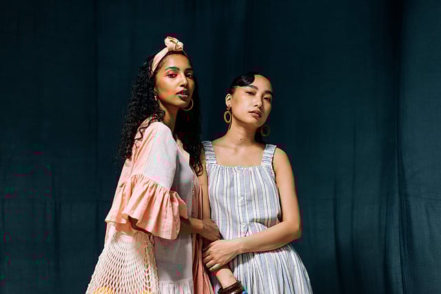 While muslin is a plain cloth, Rajeswari has given it a snazzy look by using toned down colours like powder blue, cantaloupe, carrot orange, sky blue, baby pink on a slew of chic pieces like dresses, chequered shirts, baggy pants with loose shirts, high-waist shorts and more. Expect interesting patterns on silhouettes with stripes and checks made with the Jamdani technique. At the same time, she has maintained muslin’s purity intact by using azo-free dyes and avoiding embellishments. “Indians make the best fabric in the world. I didn’t feel the need to overdo the already perfected craft. What our weavers make is a piece of art with simple and understated designs,” she adds on the design process. The artisanal edit lets our skin and the earth breathe life! From the making to the packing, RaMa ensures sustainability and pursues mindful fashion.
