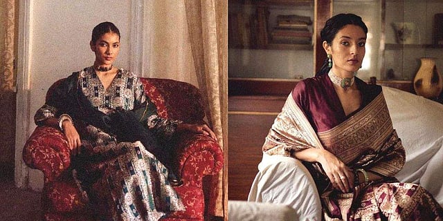 As the winter festivities knock on our doors, it’s time to dazzle in lustrous ethnic wear. If you are out of options, luxury Indian wear brand Mimamsaa has dropped its Khajurgaon collection that will wrap you in the allure of Anglo-Awadhi weaves. The collection takes its inspiration from the opulence of Raj Gharanas of Uttar Pradesh that are known for their regal style, luxurious wear and aristocratic values. The edit presents a rich collection of saris, bandhgala kurtas, tissue silk dupattas, satin silk brocade kurtas, corsets, sharara sets, and flower-motif embroidered saris for a head-turning ensemble.
