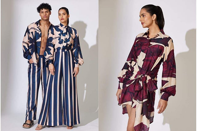 The collection comprises carefully highlighted digitally printed fabric with bead and glass handwork, also uniquely incorporating pleats, gathers and stripes to create ready-to-wear ensembles.