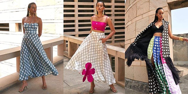 The resulting line seamlessly blends structured prints with flowing silhouettes, striking a perfect balance between style and comfort. The pieces like saris, crop tops with long skirts, slit skirts, overcoats and more capture the carefree feminine spirit while also letting one exude relaxed vibes. However, the collection's standout feature is the hand-block-printed plaid pattern, which adds a touch of sophistication to every outfit.