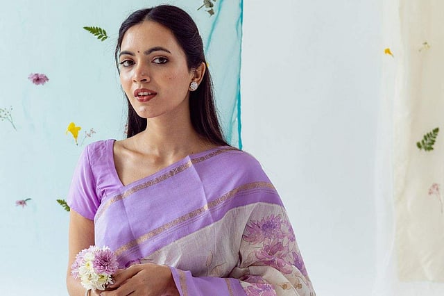 One such brand which is actively experimenting with the traditional and exquisitely handcrafted silk kanjeevaram saris is Rasvriti - House of Tulsi. What stands out is their new collection Rooh that features a set of the six yards of grace perfect for a day out in this blazing summer heat. The Chennai-based label mostly works with traditional kanjeevaram drapes and gives them contemporary spin with distinct prints, motifs and the usage of other moder n colours and aesthetics. They also play with other art forms like Madhubani , Kalamkari, Shibori, Bandhej, Batik and handpaint the fabric to create fusion kanjeevarams.