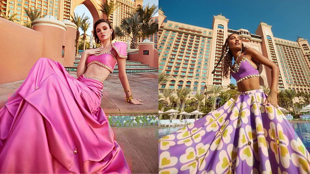 This collection isn’t just about breaking the mould; but it is an electrifying jolt of confidence and style! While the designs are rooted in Indian ethnic wear, the collection’s campaign shoot in Dubai ensures they appeal to the global citizens of today. Shubhika informs, “We selected Atlantis, The Palm in Dubai as the backdrop because it perfectly complements the luxurious and extravagant essence of Shor. It’s one of the most iconic locations of Dubai allowing us to showcase our collection in a grand and opulent setting.”