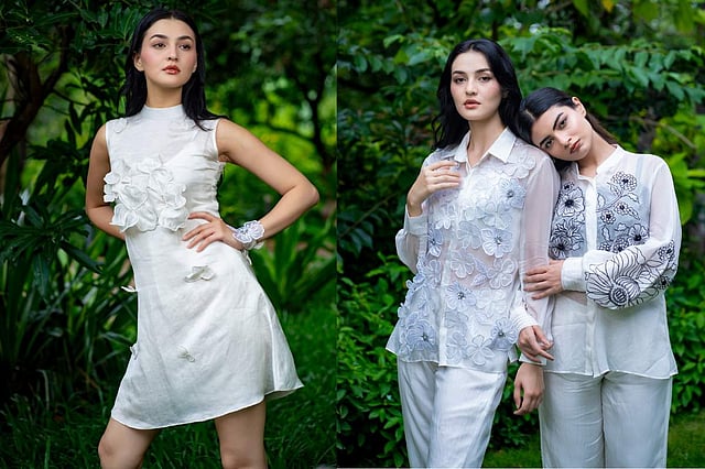 The collection distinguishes itself through the exquisite 3D embroidery and hand-cut embroidery, making each piece unique. Picking up her favourites from the collection, Sukanya says, “The ivory cutwork off-shoulder dress and the 3D flower short dress are some of my favourites, which evoke extra joy when observed.”