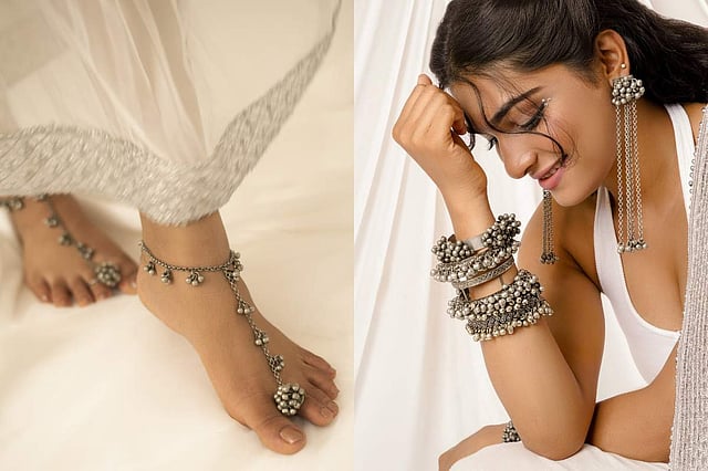 Be it the playfulness of the ghungroos or the indigenous craftsmanship, the craving for vintage fashion is brought back in this silver oxidised jewellery collection to complement the feminine cuts, adding a dainty touch to your bold statement looks.
