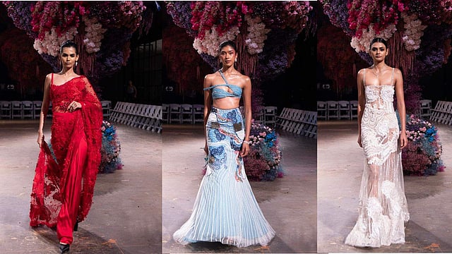 The outfits are more than just embellished pieces of clothing, they are practical and cater to the new-age preferences of modern Indian taste. Narresh elaborates on the same, “In India, the traditional ideology of couture has long been associated with wearing the heaviest lehenga, often linked to a certain price point. We believe that this outdated notion is giving way to a fresh perspective, driven by the values of functionality, experience, and individuality championed by Gen Z and millennials. Today’s couture is about more than just extravagant displays of opulence. It’s about ensuring that every garment serves a purpose beyond aesthetics. Couture should empower the wearer to fully experience and enjoy the moments they wear it for — whether it’s dancing at a wedding or travelling with ease, functionality is key.”