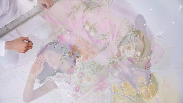 Filled with pastel colours, flowy patterns and watercolour shades, their latest collection, ‘A Dreamy Escapade’, takes its inspiration from Impressionism’s delicate brushstrokes. It embodies the essence of nature’s beauty with floral wonders, celebrating the harmonious blend of art and fashion. The collection encompasses hand-painted fabrics as well as hand-made gotta patti range.
