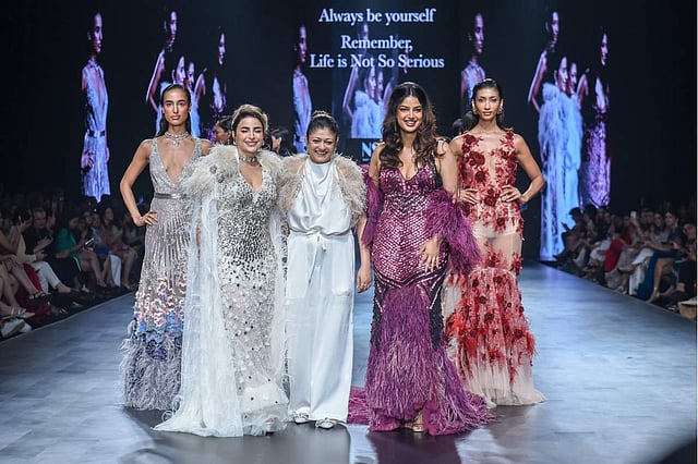 Known for her signature feather work and luxurious sheer, feted couturier Pallavi Mohan’s latest collection titled My Journey….Just the Beginning was showcased at Lakmé Fashion Week in partnership with FDCI today. The collection reflected the ethos of her brand Not So Serious in a stylish format.