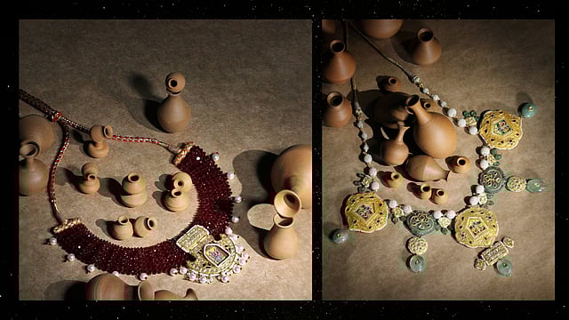 “The colours and designs of Maakhan Raas capture the joy and reverence of Janmashtami. The vibrant hues of green, pink, and maroon in the jewellery mirror the festive spirit, while the striking Radha Krishna pendant in the long necklace brings the essence of celebration to life,” Pradhyuman adds.