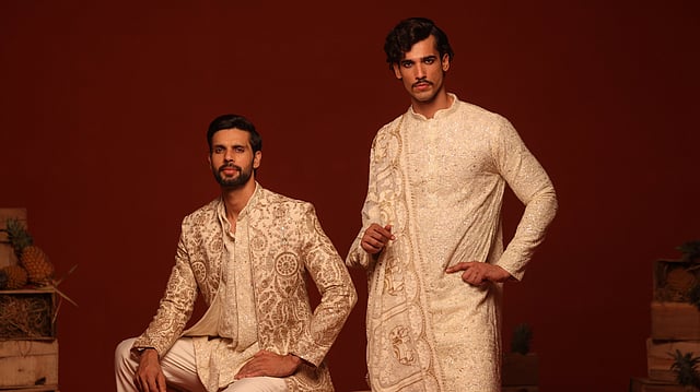 Husn is a celebration of individuality, joy, and confidence. It’s inspired by romantic essence of the ’90s, combined with motifs from Indian heritage and elements of nature. The collection is an ode to men who value style and tradition while exuding contemporary charm. From carnival themes to the serenity of desert landscapes, every piece narrates a story, making it a perfect fit for weddings, festivals, and special occasions.