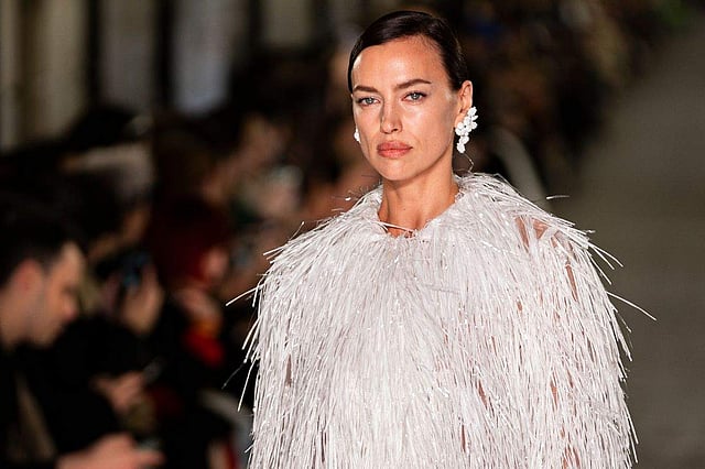 Emily Ratajkowski, Paloma Elsesser, and Irina Shayk, who closed out the show in a Tinsel Raffia coat, were among the models showing off the collection’s 34 designs. Along with the other models, they walked the long, narrow hallway of the New York Public Library showing variations of Burch’s concept, including faux croc tops and skirts, along with Tinsel raffia coats and dresses.