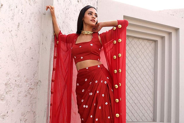 Kaizen seamlessly blends style evolution with comfort, offering a harmonious fusion of tradition and emotion. Vatsala shares, “Pairing outfits with jackets like the sari with jacket and dhoti skirt with crop top, each piece exudes char m and individuality.Designed for women who value craftsmanship and enjoy experimenting with style, every ensemble in this collection is unique.” In conclusion, she highlights some standout ensembles from the collection, including a sari paired with a jacket and a stunning red check trench jacket, which she describes as particularly fascinating.