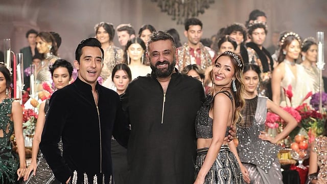 Bollywood stars Malaika Arora and Rahul Khanna graced the runway as showstoppers, donning exquisite creations from the collection. Malaika looked stunning in an armour-like blouse and flared lehenga, while Rahul exuded elegance in a sherwani with subtle floral details.