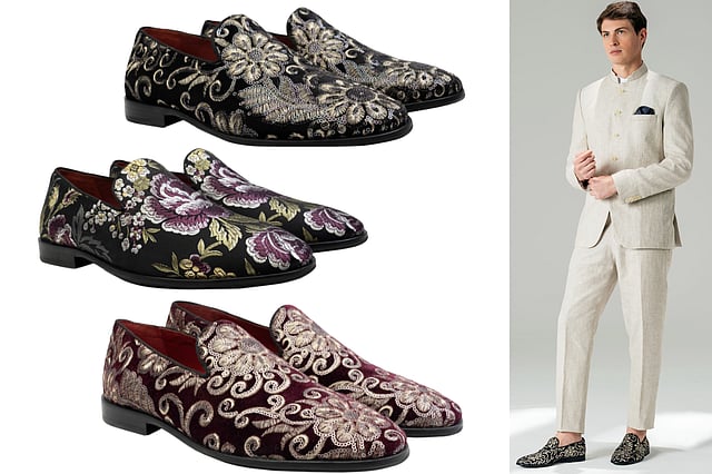 The Barry Loafer is intricately embroidered with sequin detailing and floral motifs. These beautifully crafted shoes exude ethnic elegance with a premium feel. The cushioned footbed and genuine leather sole effortlessly combine comfort with tradition.