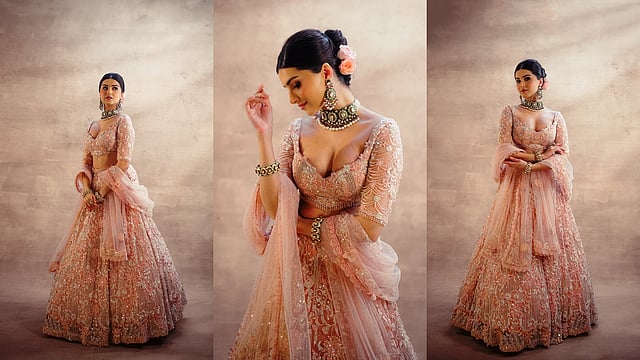As we explore the silhouettes, Varsha reveals a captivating array. “Expect to see lehengas that swirl with grace, cape sets that drape effortlessly, peplum pants that redefine contemporary chic and gowns that embody sophistication.” Each piece is designed to empower, to allow the wearer to express her unique narrative, the duo tells us.