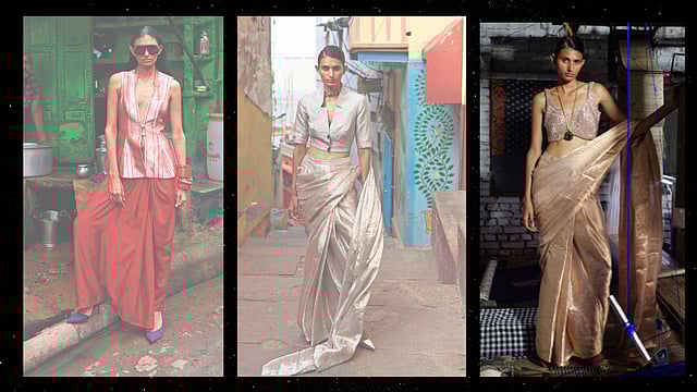 The collection comprises 64 ensembles in 17 designs. It serves as an invitation for modern women to embrace their cultural heritage while exploring innovative ways to style handloom fabrics. “We aim to inspire more people to wear handloom textiles and showcase their beauty,” Palak states. “Our goal is to convey that Banarasi textiles are timeless and can also be modern and accessible.”