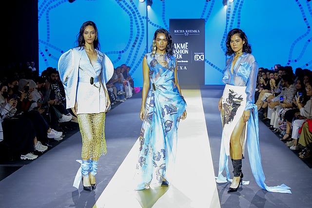 Versatile designer Richa Khemka's newly unveiled collection Piecing Art Together is all about rich textures and fabrics in a vibrant colour palette. Her design repertoire covers a wide spectrum of styles that range from traditional to western and fusion formal wear for women, and her latest edit launched at LFWxFDCI, too, has an unconventional ethereal inspiration. It is as if myriad threads converged to create these stunning silhouettes and form an art that could be worn, with rich textures and fabrics forming the base of the ensembles.