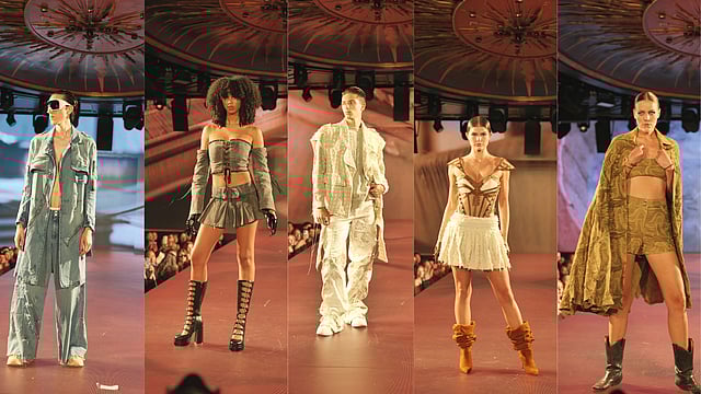 We focus on ethical production practices. We don’t mass-produce or operate in sweatshops. Our labour ensures fair wages, and most of our fabrics are hand-woven. For materials like nets and leather, we source from sustainable options, including tomato leather. This time, we’ve also embraced upcycling — what I wore on stage was a denim skirt made from left-over pieces from our previous collections. Also, we use natural dyes.