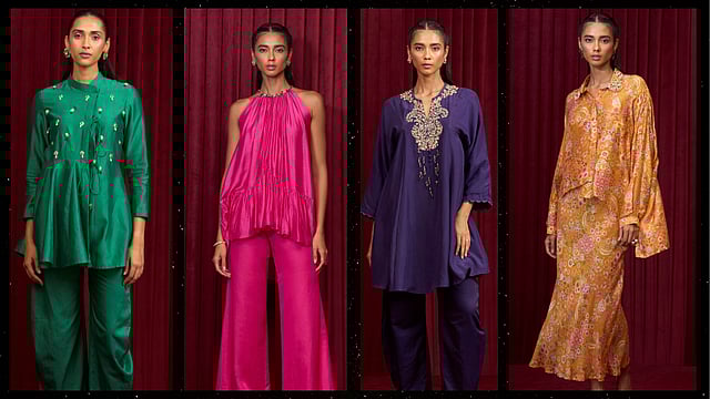 The various silhouettes are perfect for mixing and matching, whether you pair flared pants with a sleek drape jacket or layer a kaftan over your favorite trousers. “These pieces bring a modern twist to festive attire, making them suitable for any occasion,” she notes.