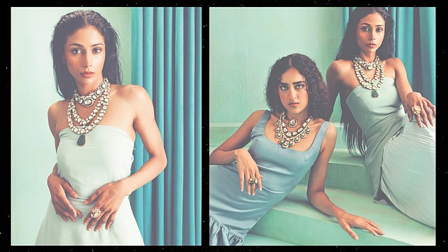 The collection’s versatile nature makes it perfect for any occasion, whether you’re attending a grand celebration or an intimate gathering. “Masoom offers pieces that transition effortlessly from daytime elegance to evening glamour. For a chic jumpsuit, pair a statement choker or layered necklace for a touch of luxury. Classic bracelets and delicate rings complement tailored pantsuits, while bold polki rings and chokers stand out beautifully with gowns,” she suggests.