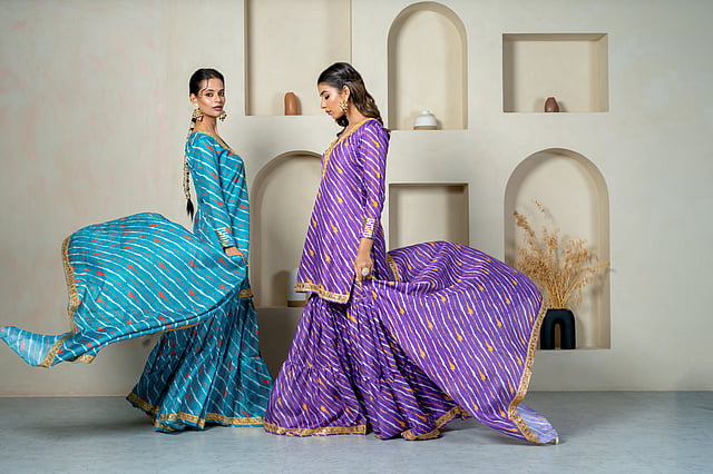 Yuvrani Jaipur epitomises the rich cultural heritage and exquisite craftsmanship of Jaipur. Traditional couture designed through a contemporary lens with a keen focus on lightness, versatility and vibrant colours, the parade of familiar silhouettes, touchable textures and tones take on an edge of magic realism with their latest drop, Utsav.