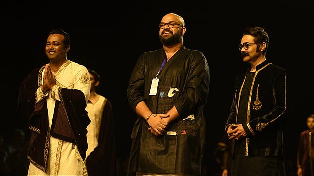 Kolkata’s emerging designer Abhisek Roy’s label Roy Calcutta made an impressive debut on the LFWxFDCI ramp at The Boy’s Club, presented by FDCI. The show was opened by tennis legend Leander Paes, who was wearing an ivory angarkha kurta, Bengali-style dhoti and a majestic black shawl. The show drew to an end with Bengal’s superstar, Prosenjit Chatterjee in a black velvet cropped jacket with gold detailing, black kurta and matching Bengali-style dhoti. Abhisek’s latest collection, Nawabs of Bengal, embarks on a fashionable journey into the medieval era of Bengal that was dominated by Nawabs. He takes us through the details.