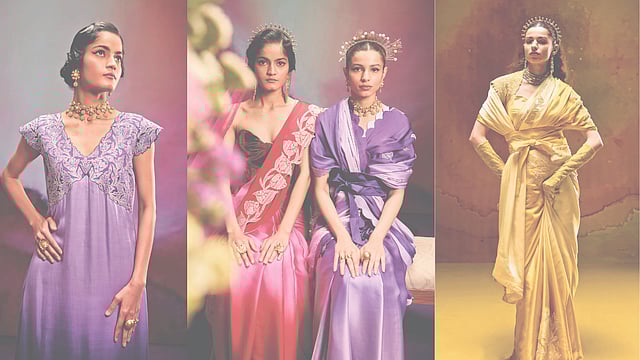 Launched under her Hyderabad-based label, the collection features saris, lehengas, and kurta sets in soft satin ombrés that glisten like morning light. The palette is nature-inspired—citrus greens, blush pinks, twilight purples, and sun-washed yellows — hues that transition as gently as the sky. “Light was a major influence,” Kavitha explains. “Morning sunlight, dusky skies, the warmth of golden hour —I wanted the colours to evoke emotion, not just follow trends.”