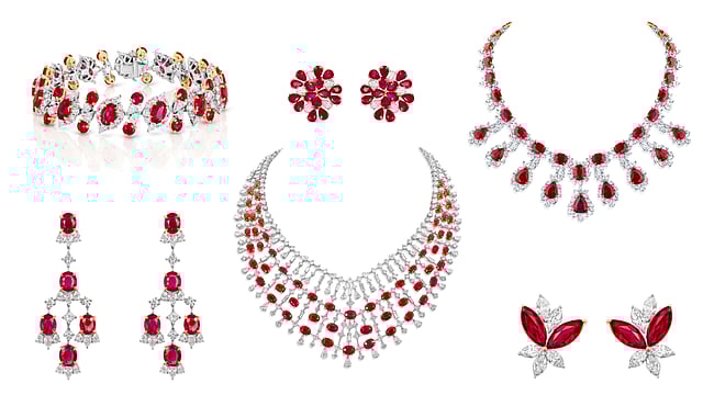 Anchored by responsibly mined Mozambican rubies, the limited-edition line features a curated edit of high-jewellery pieces that radiate finesse. It features chandelier earrings, diamond-trimmed ruby rings and statement necklaces that command attention.