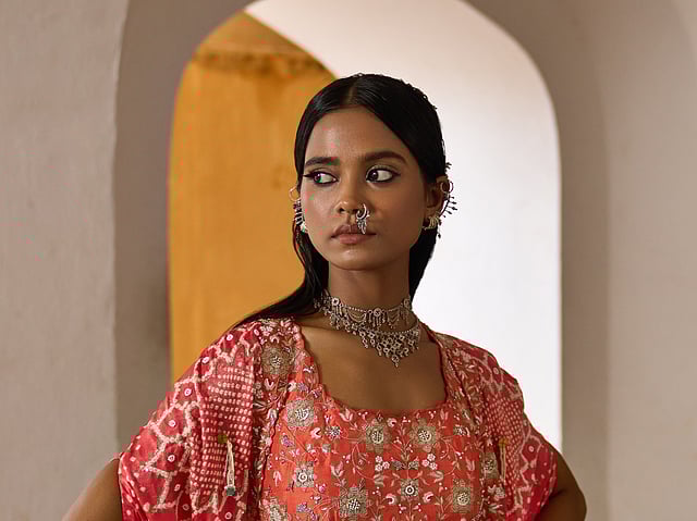 For a collection so deeply rooted in Indian tradition, the role of local artisans is invaluable. “I’ve had the privilege of working closely with incredibly skilled artisans from craft villages across India. It’s their hands that breathe life into my vision,” the designer shares. From Kutch to Jaipur and Kolkata, the collection is a coming together of diverse techniques and regional crafts. “The process is intentionally slow and thoughtful, every sunflower motif is hand-embroidered, every bandhani dot carefully tied,” she adds.