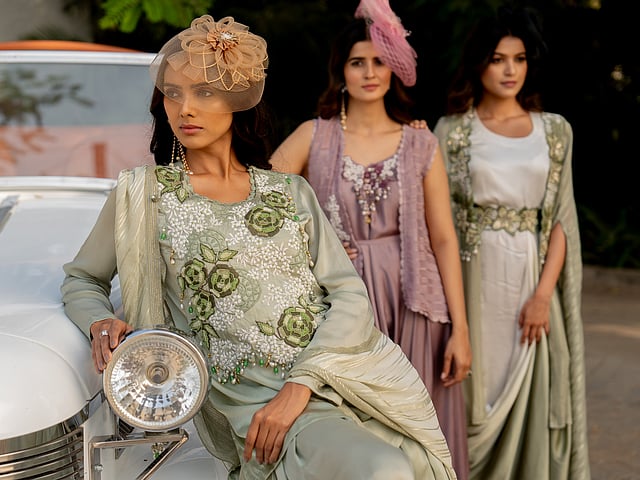 As far as the materials are concerned, this edit has a blend of luxurious fabrics such as lurex, Japanese cupro, and raw silk, chosen for their elegance and fluidity. Whereas, the difference in the colour palette showcases the spectrum of experiences in one’s journey. You’ll find different shades including soft pastels like lilac and pink to deeper hues like wine, ash and green. Nikita expresses, “The design elements include ombre effects, intricate embroidery, and thoughtfully crafted capes and vests, adding depth and dimension to each ensemble.”