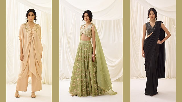 Couturier Lavanya Ahuja’s Spring-festive’25 collection, Moonrise, is inspired by moonlit nights and intimate soirées. Replete with invigorated silhouettes in incandescent monochrome hues, the drapes in ‘moon-dusted’ georgettes, gleaming satins and feathery silk organza are adorned with frosted sequins and fluttering frills, perfectly capturing the magic of starlit skies. Lavanya takes us through the edit.