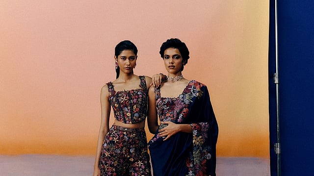 The collection presents a versatile array of styles from corsetlayered cocktail dresses and structured pantsuits to saris with reimagined proportions and playful jumpsuits. Designed to suit a wide range of personalities, each silhouette speaks to modern elegance with a hint of whimsy. “Since it’s a festive collection, we’ve captured the celebratory mood through opulent detailing, fluid fabrics, and vibrant yet romantic colours. It’s for women who want to look elegant but also feel light, joyful, and at ease,” says Swapna. Resonance Volume 2 is thoughtfully crafted for a spectrum of celebrations, be it weddings, festive soirées, evening affairs, or even more intimate gatherings where a touch of sparkle and sophistication feels just right. With pieces that can be effortlessly styled up or down, the collection embraces the spirit of versatility and celebration.