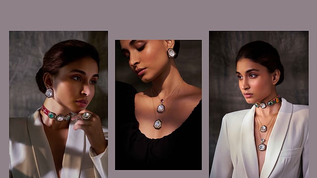 The Noor collection is crafted with a modern twist on traditional Indian craftsmanship, featuring uncut lab-grown diamonds, green emeralds, red rubies, black onyx, and set in warm, radiant gold tones. These elements come together to form a timeless yet bold aesthetic. “Lab-grown diamonds have opened up more possibilities for me in creating jewellery. With Noor, I wanted to bring fresh, bold designs that still feel luxurious. These diamonds allow us to push the boundaries of creativity while maintaining the beauty and quality we stand for,” Neeti explains, highlighting how this modern approach is woven into every design.