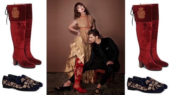 Tabby believes it will resonate with the fashion-forward brides and grooms. A standout piece is the Velvet hand zardosi knee-high boots. It is meticulously handcrafted in rich velvet and adorned with traditional zardosi embroidery with intricate metallic threads, beads, and sequins, all embroidered by hand. It is prefect for brides who want to make a statement beyond the traditional jutti or heel.