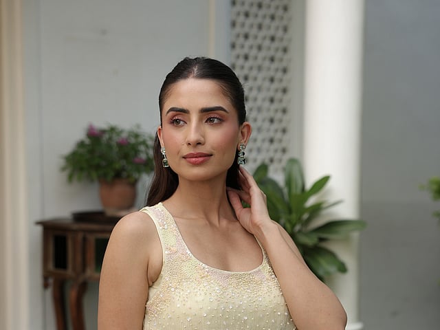 One of the most striking features of this edit is its colour palette, featuring soft pastels like pink, yellow, sky blue, peach, and sea green. “For the fabrics, we’ve worked with natural, breathable materials like silk kota doriya, modal satin, and handwoven Chanderi,” shares Nitasha. Each garment features delicate bead and sequin handwork for a gentle shimmer that enhances the fabric’s natural sheen.