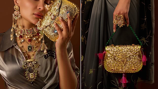 “The collection draws from the grandeur of India’s royal heritage—from zari threadwork and Mughal beadwork to repoussé metalwork and kundan jewellery—but reimagined through a modern, sculptural lens. I wanted each bag to feel like a collectible artefact, as if it had travelled through time—gilded with history, yet alive with contemporary spirit. It’s an ode to India’s storytelling tradition, where every motif whispers a legend, and every texture carries a trace of the hand that shaped it,” he shares.
