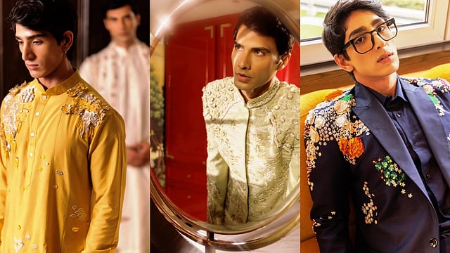 Bundi sets, bandhgalas, sherwanis, structured tuxedos, and layered kurta sets with signature panel and straight cuts — each designed with a contemporary edge while holding true to their Indian roots.