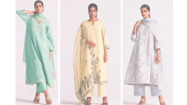 Behind this simplicity lies meticulous artisanal craftsmanship. “Much of the collection is shaped by repetition—fine thread embroidery and weaving done by hand over days, not hours,” Karishma reveals.