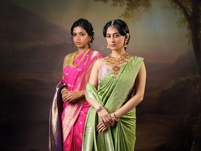 “The Wedding Edit is crafted in 92.5 sterling silver, finished with a 22ct gold plating, and adorned with pearls, kundan-style stones, moissanite accents, and traditional detailing,” Nithya shares. Wondering what’s the hue spectrum like? It revolves around soft golds, ivory pearls, champagne tones, deep reds, emerald greens, and subtle pastels. According to the designer, these colours complement Indian bridal wear effortlessly, be it silks, lehengas, or handwoven textiles.