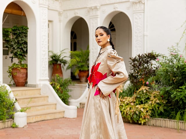 One piece stands out for Esha. “The Saanvi co-ord set feels especially close to my heart as it reflects what I naturally gravitate towards — handloom fabrics expressed through modern silhouettes,” she says. Another defining look is the Lorena ensemble, built with patchwork and resham embroidery, which captures the balance between craft and practicality.