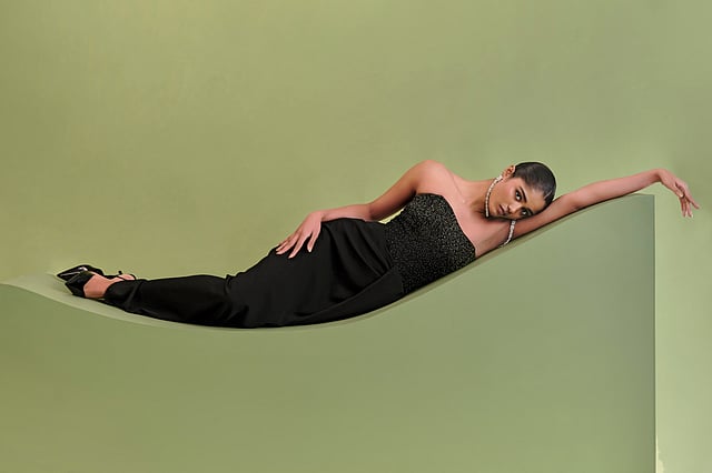 Black continues to be the brand’s foundation, lifted this season with subtle greens inspired by the aurora. “Black is our canvas, our comfort. The flickering shine only enhances the wearer’s confidence. The green ombré wasn’t based on trend — it reflected the maturity we have reached as a brand,” Riya elaborates.