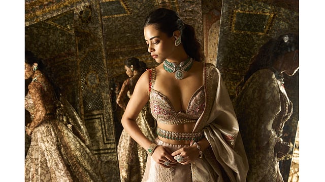 Crafted with the house’s signature artistry, the collection features rare-sized polki diamonds, lush emeralds and vivid coloured gemstones. Polki, an integral part of the brand’s design heritage, forms the foundation of the pieces. Their organic brilliance carries a sense of history and timelessness, making them perfect for a collection rooted in legacy.