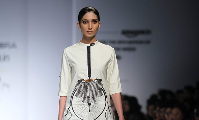 “Since the line looks to cater to a summer wardrobe, we have stuck to a colour palette of powder peaches and blues, gentle greys, radiant reds, and whites. This season, the apparel has a lot of badla work which has translated into floral and animal embroidery – a staple with the label,” says the Kolkata-based designer. With fabrics like cotton, lightweight silk and chanderi transformed into skirts, shirts, jackets, blouses, dresses and pants, Sneha Arora’s creations are charmingly experimental and makes us ask – So, your target demography is young and contemporary? But a laugh dispels such assumptions. “My clientele ranges from women in their 20s to those well into their 50s.” Clarifying, “Though the feeling that the collection exudes is more masculine and has to do with power and confidence, the drapes lend a feminine twist and fits the delicate form perfectly.”